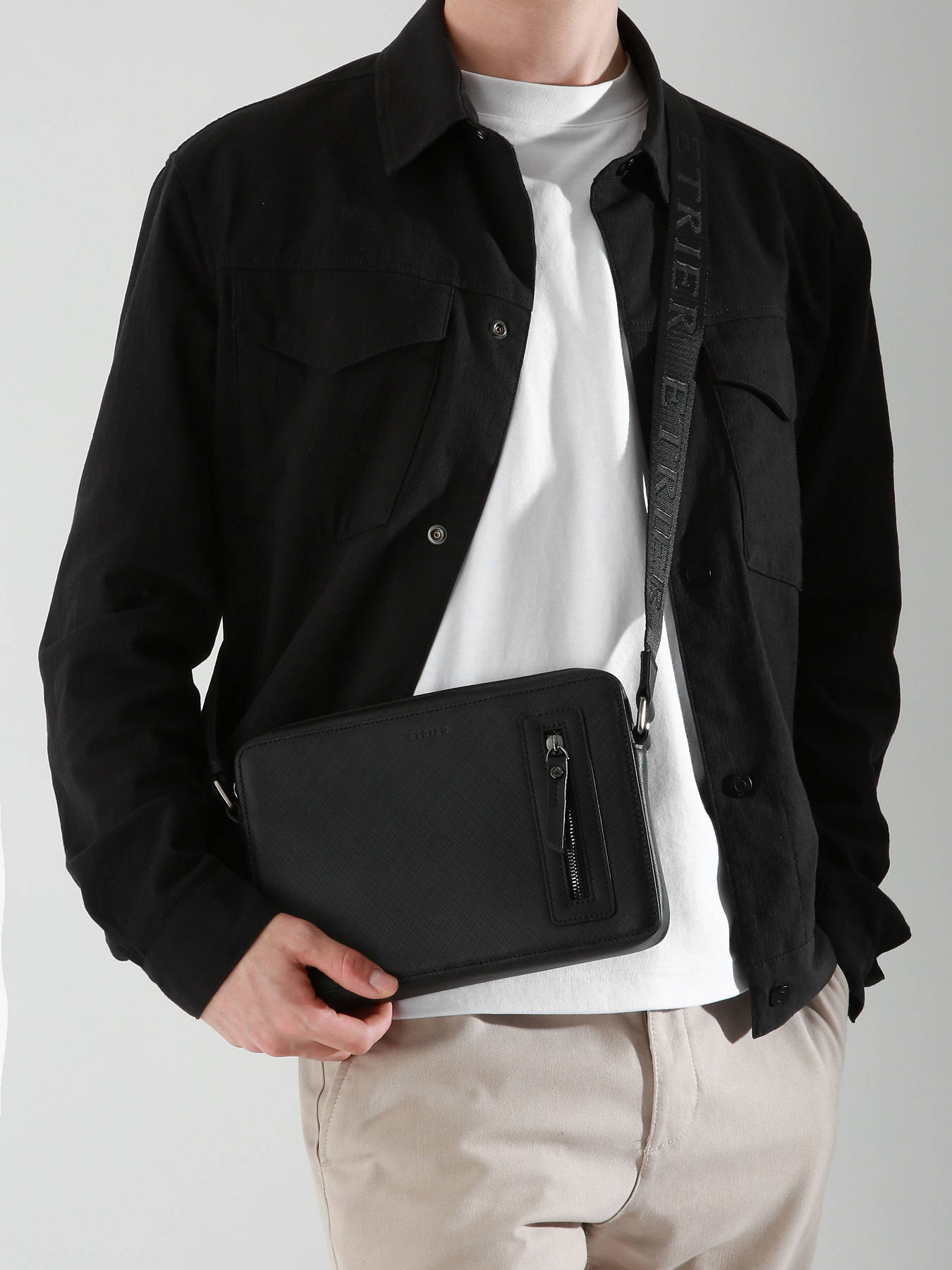 This crossbody bag from the Flèche line, made of textured leather, combines elegance and practicality. It features a front pocket for easy access to your essentials. Inside, it includes one simple pocket and one quick-access pocket for optimal organization of your items.
